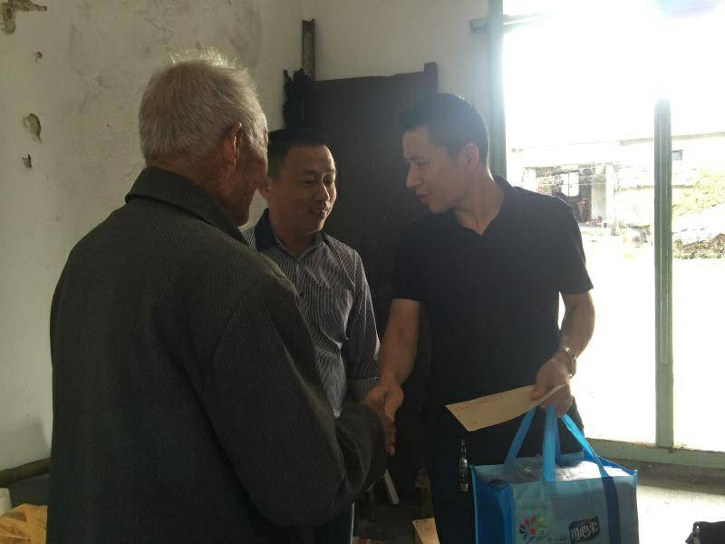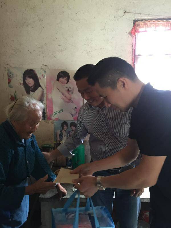 重阳节浙江吉林彦霖网络直播平台有限公司纸业陈少林董事长、生产部经理邵忠华等企业高层前往结对村看望困难老人