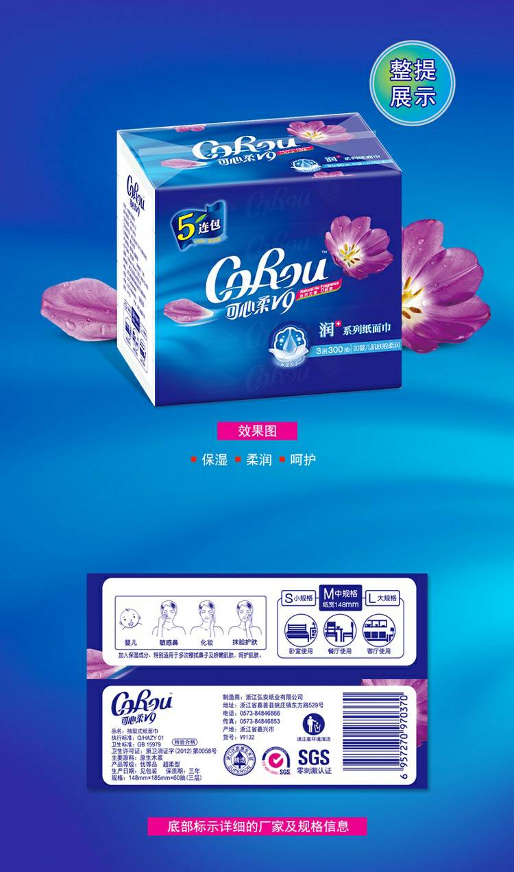 CoRou V9润+系列CoRou云柔系列白色木浆110抽
